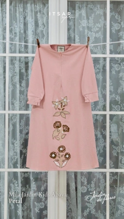 Inspired by gardens in soft bloom, Mila Jardin Kid Abaya is made for meaningful first embraces, shared laughter, and beautiful childhood memories.